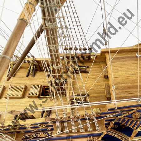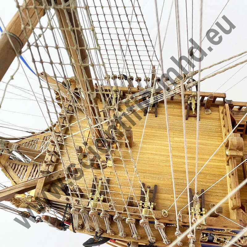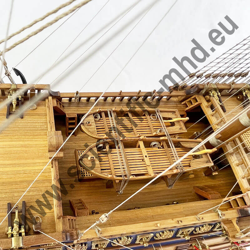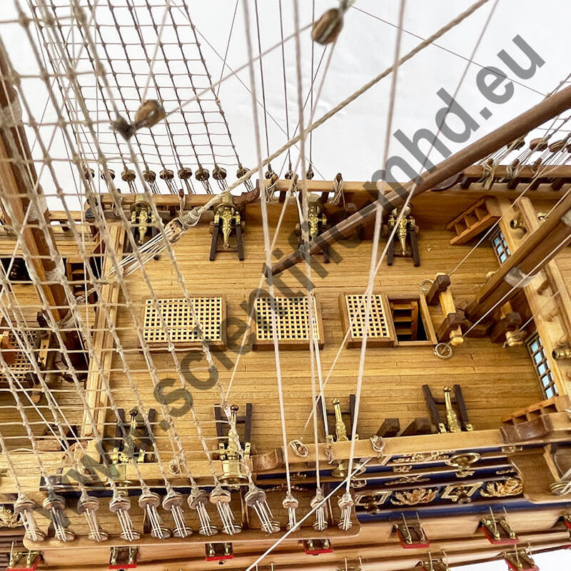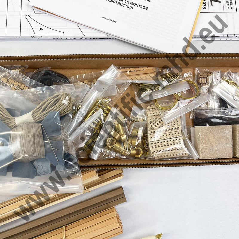 The flags are printed on genuine silk, the anchors and metal accessories are of the finest effect. The numerous and extraordinary detailed sketches greatly facilitate the construction of the model.