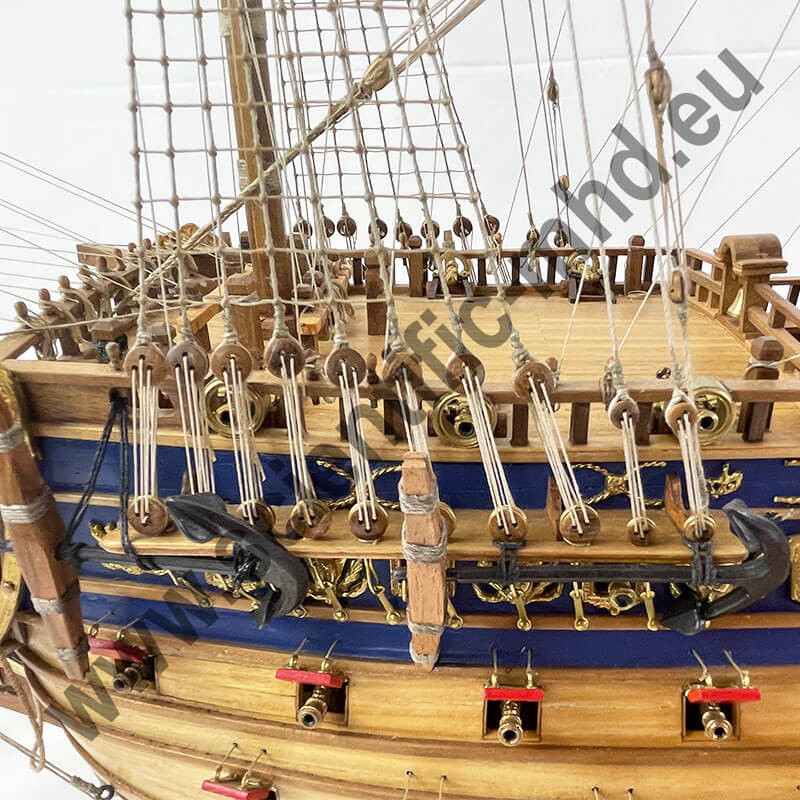It is also the only three-deck ship pierced with fourteen gun ports before 1689.