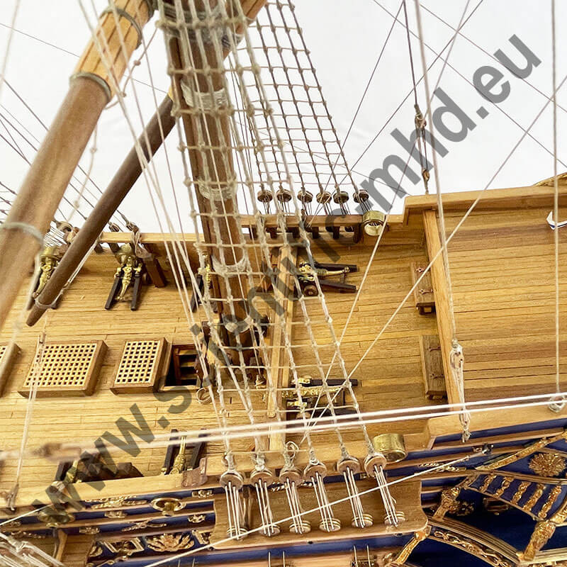 As a first-rate ship, it was equipped with three lanterns at the top of the stern and another lantern on the mizzen mast.