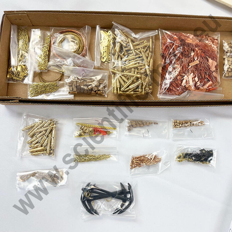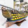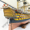 The PANART box bearing this reference S068738 is an exact replica of Admiral Lord Nelson's King of the Seas. The box contains all the laser-cut wooden parts for perfect assembly and fit, and is built in pairs and double planking. The flags are printed on real silk. Very detailed brass fittings, with cannons, lanterns, figureheads, etc. The rectangular imitation copper plates are made of wood. Rectangular imitation copper plates are included to allow you to build the hull of the model as it was protected during the war.