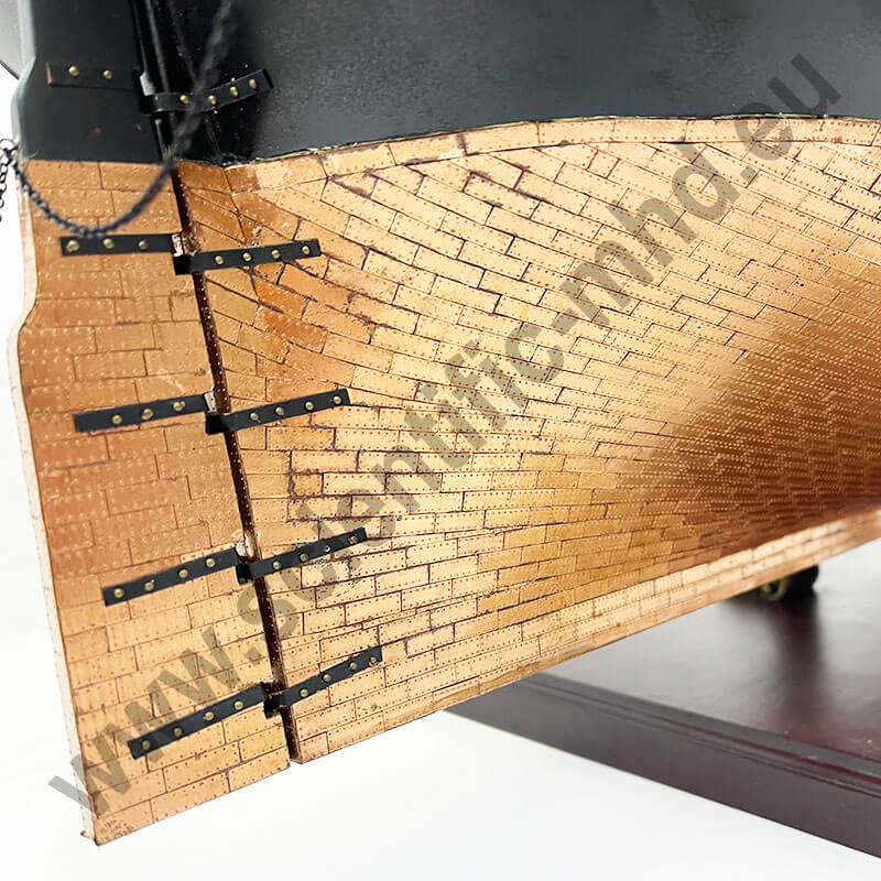 The hull has been meticulously covered with more than 20.000 miniature copper plates to faithfully represent the ship at a 1:1 scale.