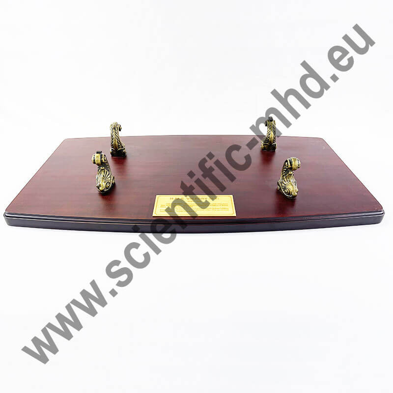 The model is presented on a beautiful dark wood base, in a walnut style.